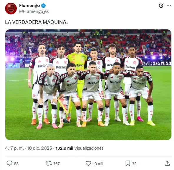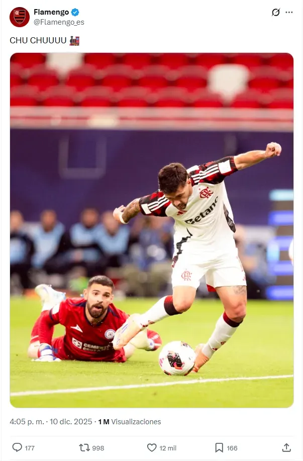 Apenas terminó el partido, la cuenta oficial en español de Flamengo lanzó el primer mensaje que encendió a la afición cementera. Compartieron una imagen de Andrés Gudiño tendido en el césped, junto al texto “CHU CHU”, imitando el sonido de un tren que “pasa por encima”. El mensaje se interpretó como una referencia directa a La Máquina… pero siendo aplastada.