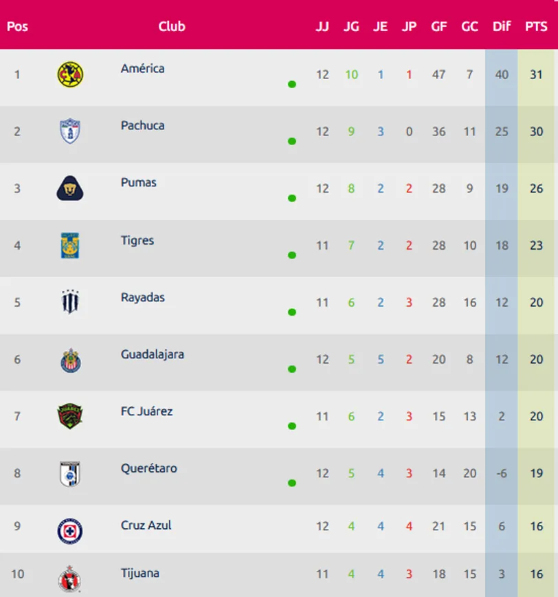 Cruz Azul femenil se ubica en la novena posición del Torneo Clausura 2025 con 16 puntos totales, producto de 4 victorias, 4 empates y 4 derrotas en 12 partidos disputados. El equipo celeste ha anotado 21 goles y recibido 15, manteniendo una diferencia de +6 goles a su favor. El sueño de la Liguilla continúa.