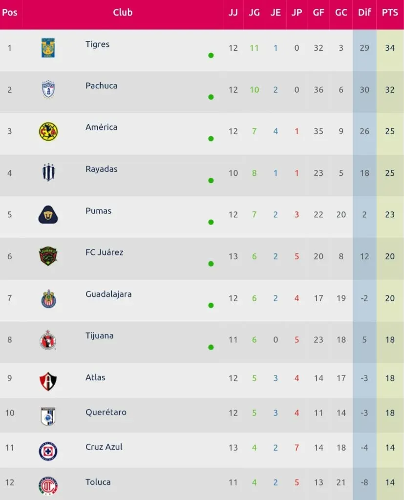 Y es que luego de disputar el duelo de la Jornada 12, Cruz Azul quedó ubicado en el lugar 11 de la clasificación con 14 puntos. Mismos que registra Toluca un lugar abajo, pero con una peor diferencia de goles que las cementeras con -4.