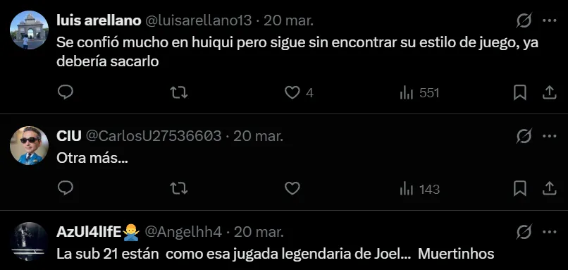 El exfutbolista celeste y entrenador de la Sub-21 no logra encontrar un funcionamiento ni regularidad acordes a la grandeza de la institución. Debajo del posteo oficial del Cruz Azul luego del resultado final del partido, los comentarios fueron de tinte negativo y en su mayoría apuntando contra el propio Huiqui.