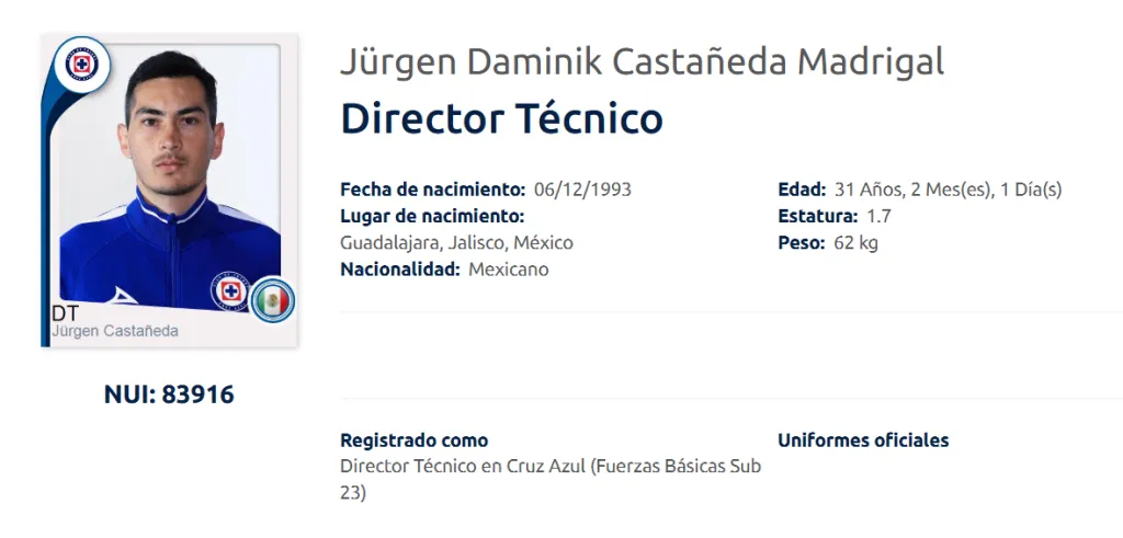 Es así que, de manera inminente, también se presentaron cambios en Cruz Azul Sub 23 y una reestructura en el cuerpo técnico, luego de que Sánchez y Huiqui se mantienen al frente en Primera División. Ahora, es Jürgen Daminik Castañeda Madrigal quien quedó registrado como DT de la categoría.