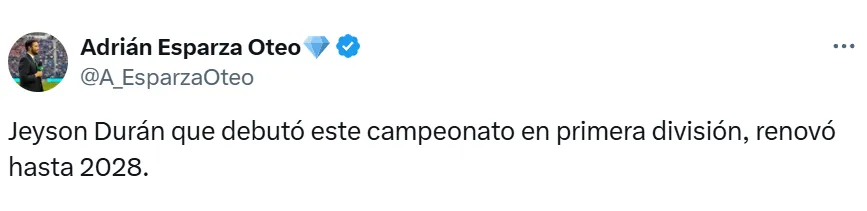 Fue Adrián Esparza, periodista de TUDN, quien dio a conocer la buena nueva desde La Noria, a través de una publicación en su cuenta de X. El reportero especialista en el día a día de La Máquina advirtió que el juvenil amplió su vínculo por tres años más.