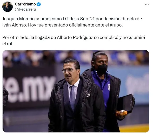 La misma fuente señaló que Iván Alonso eligió a Joaquín Moreno como el entrenador de Cruz Azul Sub-21. Incluso estuvo en La Noria para presentarse ante el grupo de jóvenes que serán parte de la nueva categoría. A pesar de que en el último año no estuvo entrenando, el Ingeniero ha dirigido durante mucho tiempo en las fuerzas básicas del club; además de haber tenido oportunidades en el primer equipo.