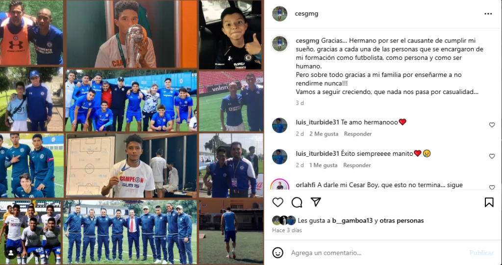 En pleno tornado de movimientos, de cara al Clausura 2024, se confirmó una baja más para Cruz Azul. Se trata de César Martínez, canterano que ya había podido entrenar con el primer equipo y que confirmó su salida de La Noria con una emotiva despedida en redes.