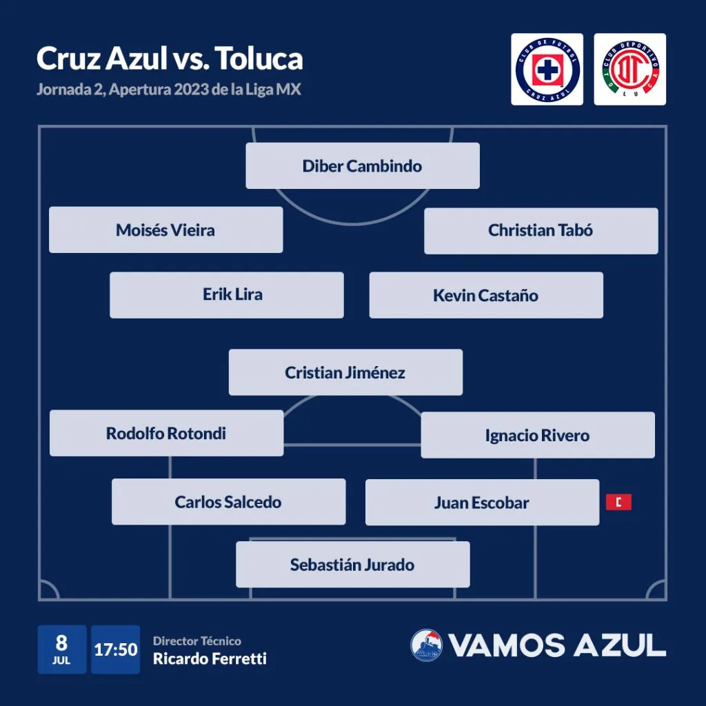Luego de la dolorosa derrota frente a Atlas en el debut, Ricardo Ferretti sorprendió con tres cambios en su alineación inicial contra Toluca, respecto al partido de la Jornada 1, entre los que más destaca el regreso de Juan Escobar como el gran capitán.