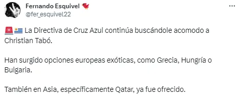 Según información del periodista Fernando Esquivel, a Christian Tabó le han surgido posibilidades de emigrar a equipos de Grecia, Hungría o Bulgaria. El reportero especializado en mercado no dio a conocer los nombres de estos clubes.