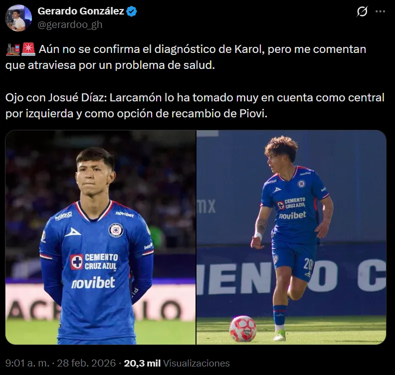 El reportero y colaborador de Vamos Azul, Gerardo González, reveló que no se ha podido confirmar con exactitud el diagnóstico del problema que estaría atentando contra la salud del futbolista de 20 años, por lo que nuevamente no sería contemplado para el duelo contra Monterrey.
