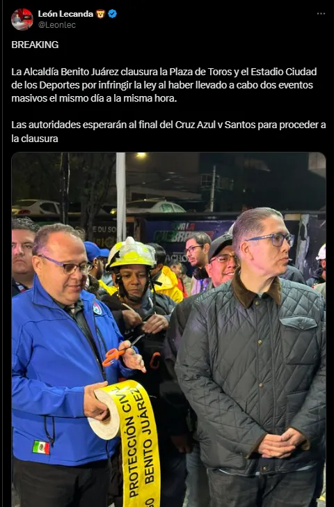 La Alcaldía Benito Juárez tomó la determinación de clausurar tanto el Estadio Ciudad de los Deportes como la Plaza de los Toros. Esto, por infringir la ley al llevarse a cabo dos eventos masivos en el mismo día, a la misma hora y con poca diferencia entre ambos sitios.