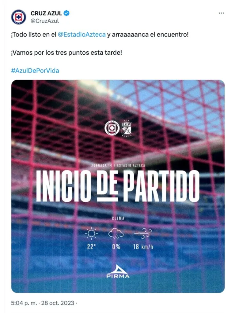 Previo al inicio del partido, se registra una pobrísima entrada en el Estadio Azteca. Tal situación obedece al incierto presente de Cruz Azul, que -además- no ha logrado el triunfo en la presente torneo en el inmueble mundialista.