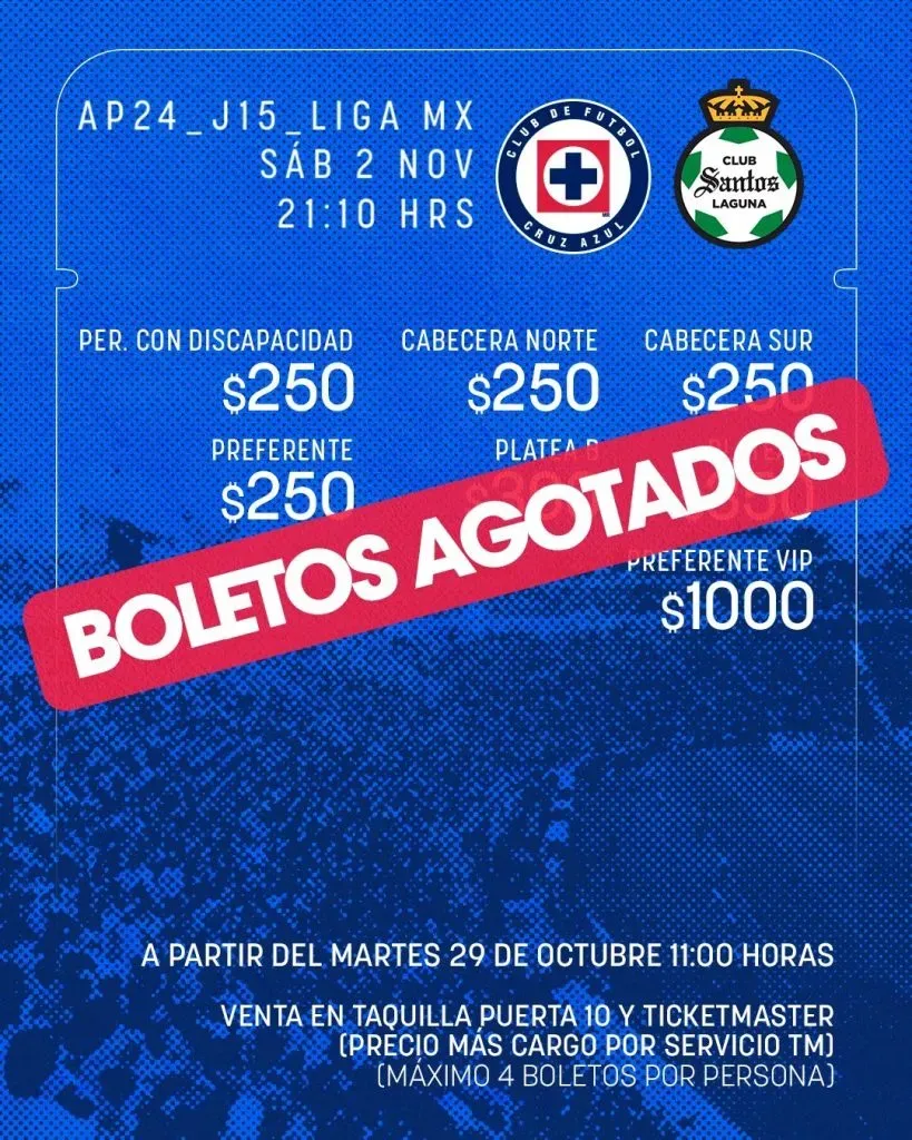 Cruz Azul vs. Santos Laguna: Boletos agotados a pesar de la lluvia