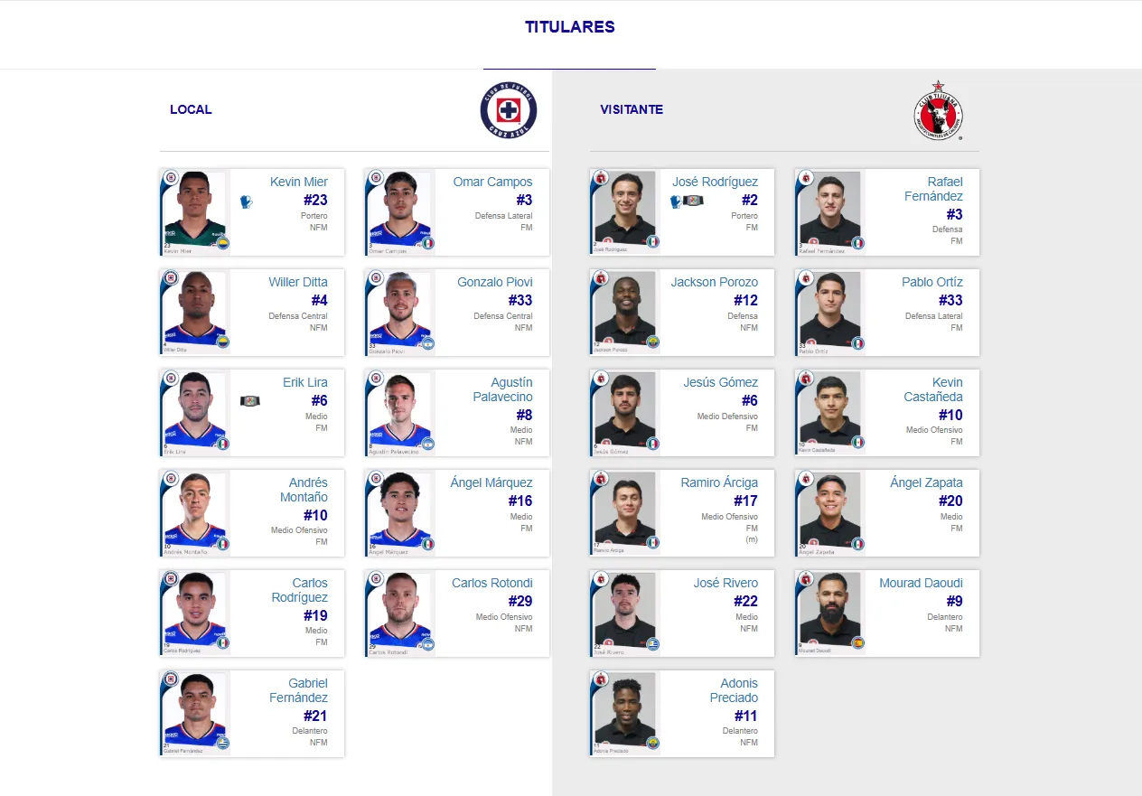 Cruz Azul va con: Mier,Ditta, Lira, Piovi, Campos, Rotondi; Jeremy, Charly, Montaño, Palavecino; Toro Fernández