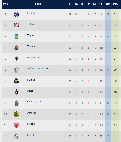 Es decir, luego del triunfo ante Puebla, en combinación con la derrota del Necaxa esta jornada, ya ningún equipo de los que están fuera de los 10 primeros lugares puede superar matemáticamente a Cruz Azul. Así, en caso de una verdadera tragedia, lo más que podrían caer los celestes sería al décimo sitio.
