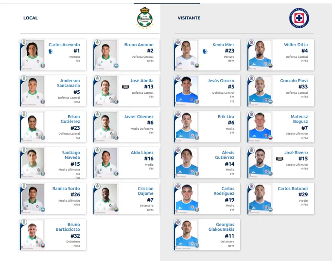 La alineación de Santos para enfrentar a Cruz Azul
