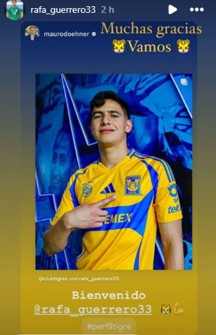 Ya instalado en Monterrey, Guerrero habló sobre el nuevo club en su carrera y ahora dio el siguiente paso, ya poniéndose la playera azul y amarilla. . “Defensa mexicano con garra, juventud y fortaleza que llega para reforzar a nuestro equipo en este Apertura 2024. ¡Rafael Guerrero ya es de La U!”, escribieron desde las redes de Tigres.