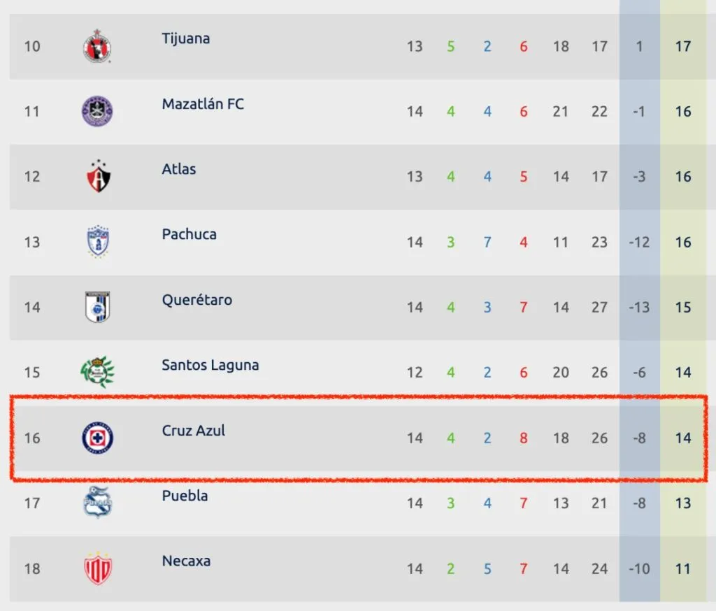 En ese sentido, destaca que tras el triunfo sobre el cuadro esmeralda, el conjunto celeste escaló una posición en la clasificación; actualmente Cruz Azul se ubica en el lugar 16 de la tabla general, arriba de Puebla y Necaxa, que también lograron resultados positivos en la jornada 14 del Apertura 2023.