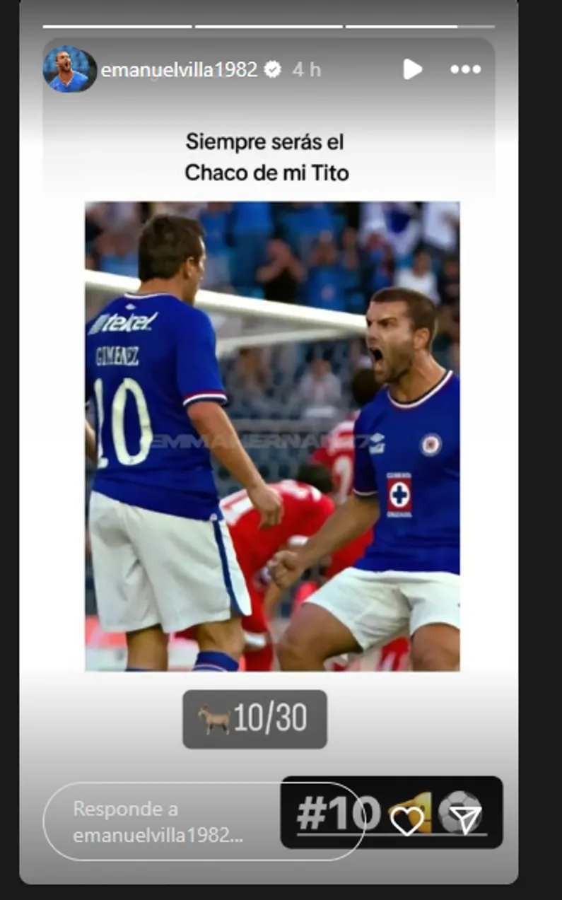 Esto se pudo ver en este día domingo, en donde Villa posteó en una de sus historias de Instagram una foto de ambos, gritando un gol de manera desaforada: “Siempre serás el Chaco de mi Tito“, exclamó el hoy comentarista de TUDN, quien además colocó los números 10/30, en alusión a los dorsales que usaban.