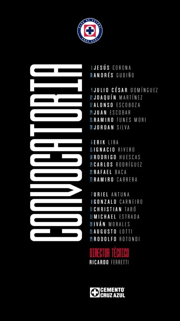 Cruz Azul: convocatoria completa