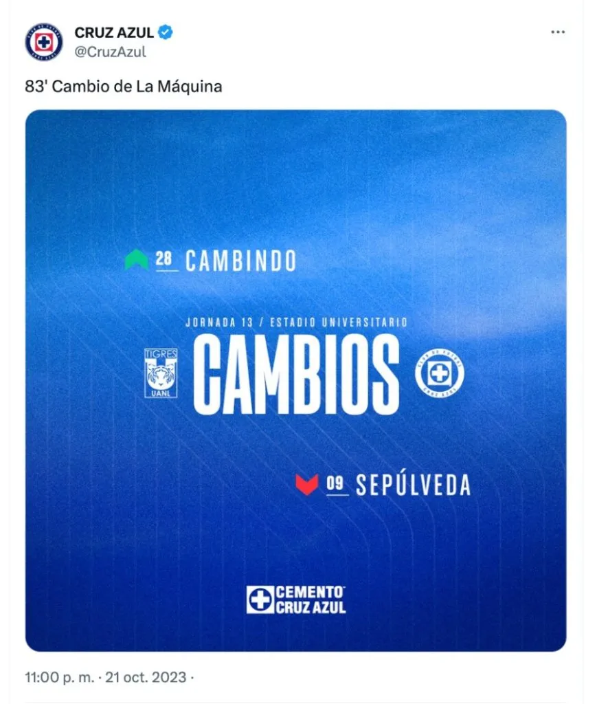 ¡Cruz Azul sufrió una nueva derrota en el Apertura 2023! Este sábado, La Máquina cayó (2-1) ante los Tigres, en partido correspondiente a la jornada 13 de la Liga MX. Y con ello, el equipo cementero se aleja dramáticamente de la posibilidad de colocarse al PLAY IN.
