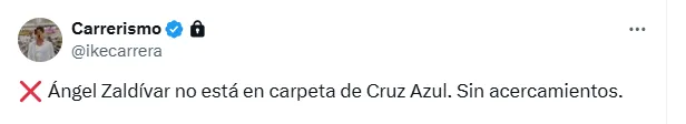 Se trata de Ángel Zaldívar, delantero mexicano de 31 años formado en Chivas y con presente en FC Juárez. Sin embargo, los rumores rápidamente llegaron a su fin gracias a la información de Ike Carrera, periodista que sigue de cerca la actualidad de Cruz Azul. “Ángel Zaldívar no está en carpeta de Cruz Azul. Sin acercamientos”, publicó en su cuenta de X.