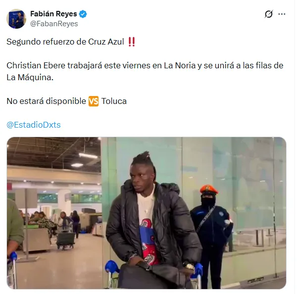 En el lugar estuvo presente Gerardo González, colaborador de Vamos Azul, quien documentó el primer registro del futbolista en suelo mexicano. Se trata de las primeras imágenes de Ebere como futuro jugador de Cruz Azul, una postal que rápidamente comenzó a circular entre la afición celeste, que lo muestran cauto y sin declarar mientras salía del aeropuerto hacia un vehículo que lo esperaba.