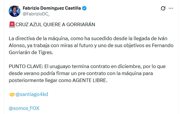 De acuerdo con información de Fox Sports, Cruz Azul ya habría iniciado contactos con la mira en una estrategia muy clara: esperar el momento exacto para quedarse con Gorriarán sin pagar transferencia.