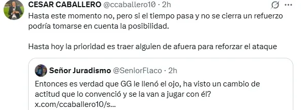 Así lo dio a conocer el periodista César Caballero, quien en respuesta a la pregunta de uno de sus seguidores, reconoció que Giakoumakis es la alternativa que se maneja en el cuerpo técnico y la directiva si no llega ni Jovic ni ningún otro futbolista.