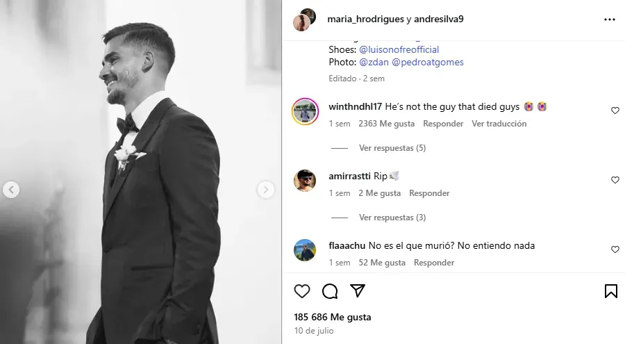 “R.I.P”. “¿No es el que murió? No entiendo nada”. “Descansa en paz, André”, son parte de los comentarios que se leen en la última publicación del jugador en sus redes sociales. Silva regresó al RB Leipzig luego de ser cedido al Werder Bremen y al momento se encuentra en plena pretemporada.