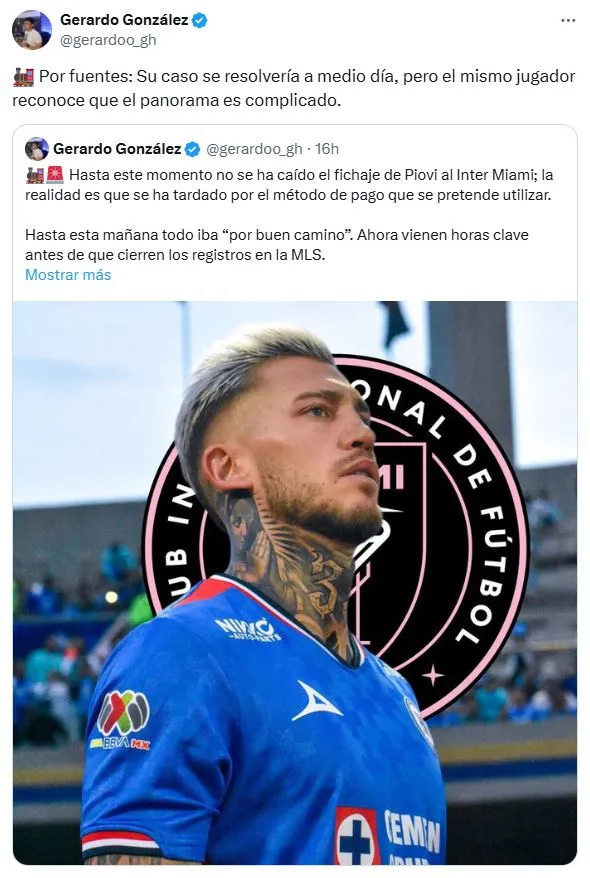 A su vez, Carlos Córdova señaló que Gonzalo Piovi está insistiendo para que se realice la transferencia. En la misma línea, en Fox Sports se agregó: “Estaría bajo de ánimo, ya que se ilusionó con llegar al Inter Miami con Lionel Messi y otras estrellas, pero se reitera, que aún hay chances de que se destrabe”. Sin dudas resulta un golpe duro porque resultó una sorpresa que finalmente el club presidido por David Beckham no llegara a las cifras establecidas desde el primer momento.