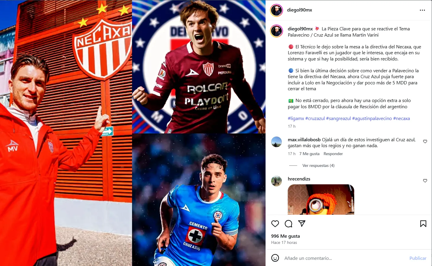 La competencia por Palavecino no ha sido menor: varios equipos del futbol mexicano mostraron interés en estos meses. Pero, su costo elevado (cerca de 8 millones de dólares) sumado a la saturación de plazas de jugadores extranjeros en Cruz Azul, convierte la operación en un reto estratégico y logístico para la directiva.