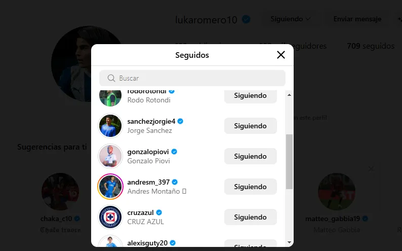 Así, además de seguir la cuenta oficial de Cruz Azul, Luka Romero también comenzó a seguir a la mayoría de sus compañeros celestes. Por su puesto que sus compatriotas, Rodolfo Rotondi, Lorenzo Faravelli y Gonzalo Piovi encabezan la lista, así como el capitán Ignacio Rivero.