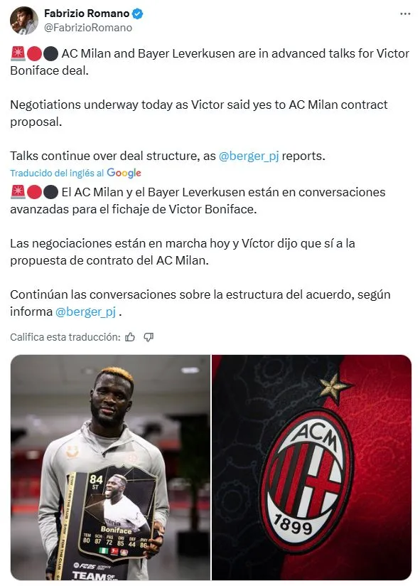 En medio de este contexto, Fabrizio Romano confirmó que Milan llegó a un acuerdo con Víctor Boniface en términos personales. Aunque todavía no se cerró la operación con el Bayer Leverkusen, las negociaciones están avanzadas y hay positivismo en que podría concretarse. De esta manera, Santi Giménez deberá lugar nuevamente para ganarse un lugar como titular.