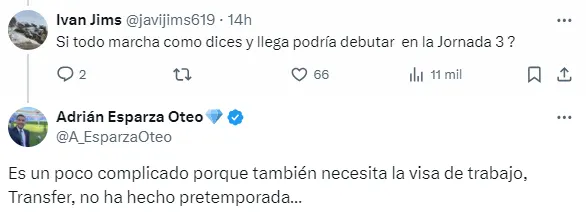 “Es un poco complicado porque también necesita la visa de trabajo, Transfer, no ha hecho pretemporada“, advirtió Adrián Esparza, periodista de TUDN respecto a que el debut del todavía jugador de la MLS no se daría en la Jornada 3 ante Puebla, en el Estadio Olímpico Universitario.