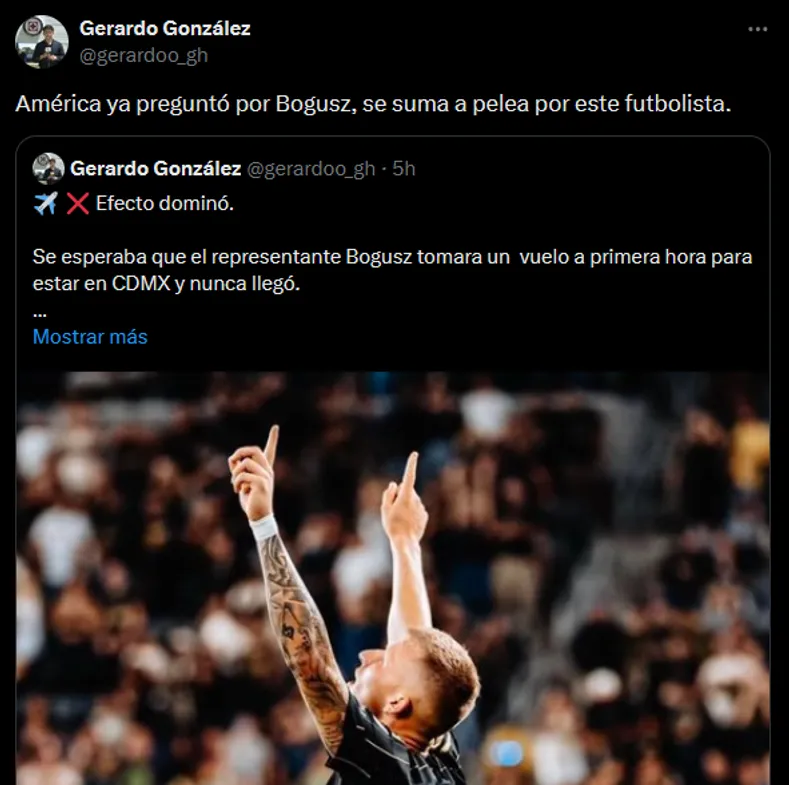 Dos periodistas referentes en la actualidad de Cruz Azul, como lo son Ike Carrera y Gerardo González, expresaron que nada menos que el América se mete en la pelea para fichar al mediocampista de Los Ángeles FC. “América ya preguntó por Bogusz, se suma a pelea por este futbolista“, expresó el reportero de Récord.