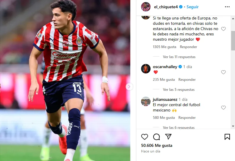 “Si te llega una oferta de Europa, no dudes en tomarla, en Chivas solo te estancarás, a la afición de Chivas no le debes nada mi muchacho, eres nuestro mejor jugador”. “No nos debes nada Chiquete, si tienes una oportunidad vete y no te estanques, pero vuelve siempre cuando quieras”, son algunos de los comentarios que se leen en la última publicación de Orozco.