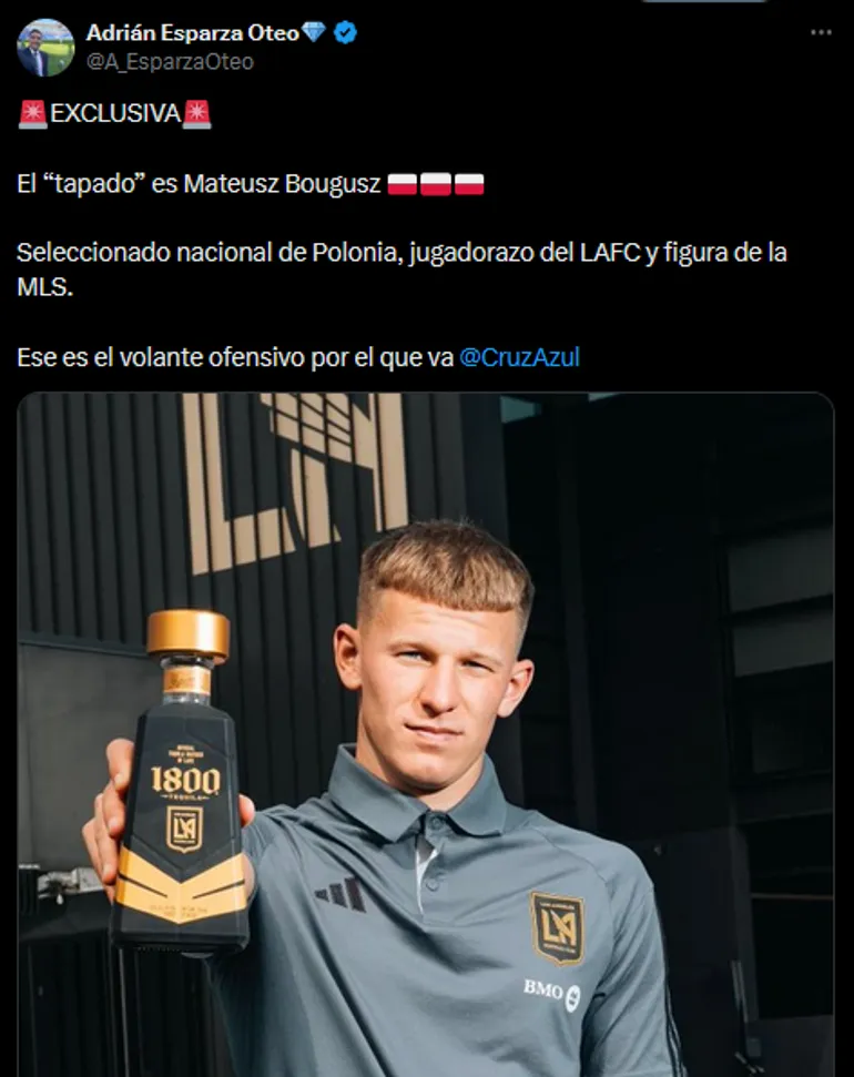Lo hizo a través de su cuenta personal de X, y esa publicación se hizo totalmente viral en un abrir y cerrar de ojos. “El tapado es Mateusz Bogusz. Seleccionado nacional de Polonia, jugadorazo del LAFC y figura de la MLS. Ese es el volante ofensivo por el que va Cruz Azul”, expresó el reportero.
