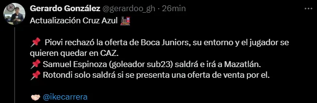 Cruz Azul sigue con muchos movimientos en el mercado de pases de invierno. El equipo cementero ya cuenta con algunas bajas para el Torneo Clausura 2025, y en las últimas horas se confirmó la salida de un jugador muy querido por la afición: Samuel Espinosa.