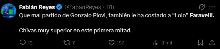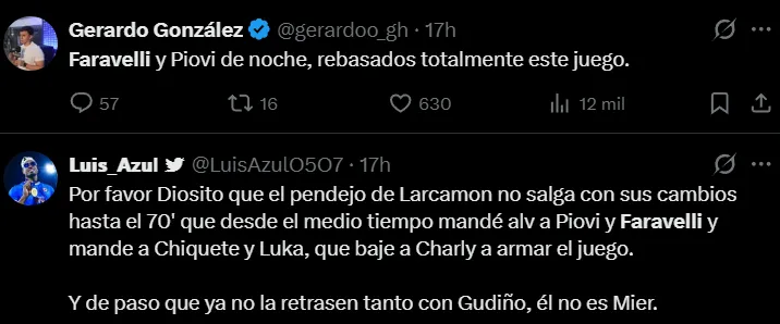 Los dos futbolistas apuntados por la fanaticada fueron Gonzalo Piovi y Lorenzo Faravelli. Ambos futbolistas se vieron superados en el juego durante la primera mitad, donde las redes sociales se encendieron para señalarlos y pedir por algunos cambios puntuales. Nicolás Larcamón pareció tomar nota de esto, porque los sacó a ambos en el medio tiempo para colocar a Jesús Orozco y Jorge Sánchez.