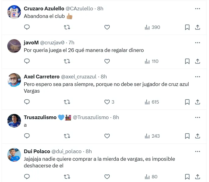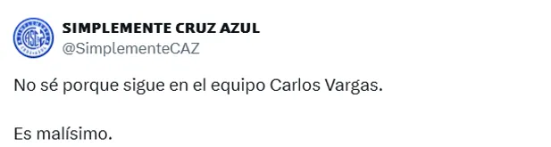 En redes sociales, los comentarios en su contra fueron implacables. Frases como “Por eso no lo quieren ni regalado, ¡es malísimo!”, o “No sé por qué sigue en el equipo Carlos Vargas, es horrible”, reflejan el hartazgo de un sector de la hinchada que exige su salida inmediata del club. “Abandona el club“, sentenció otro seguidor celeste.