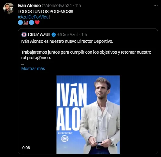 “¡Bienvenido a Cruz Azul, Iván! ¡Ya eres #AzulDePorVida!”, fue el mensaje con el que las redes sociales del conjunto celeste anunciaron públicamente la llegada del exfutbolista nacido en Montevideo. “Trabajaremos juntos para cumplir con los objetivos y retomar nuestro rol protagónico”, agregó el club en su cuenta de ‘X’.