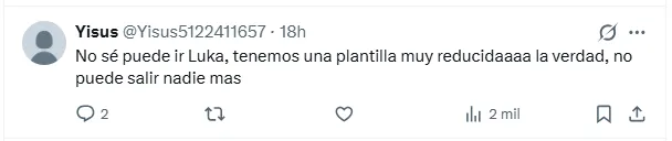 La discusión también incluyó críticas a la gestión del equipo: “Terrible gestión si dejan que se vaya Luka” y preocupaciones sobre la plantilla: “No podemos cortar más el plantel. Especialmente si es FM”. Incluso hubo quienes propusieron soluciones más pragmáticas: “No creo que sea adecuado. Cómo sea si lo van a vender que sea a precio conveniente y nada de abonos chiquitos“.