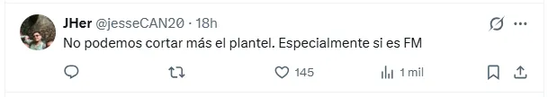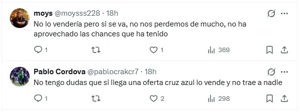 Otros no se mostraron tan optimistas sobre la planificación: “Ya no mms. De qué se trata, se va a ir y quién va a venir? No hay planeación en este equipo“. Algunos matizaron sus opiniones, reconociendo que Romero no siempre ha aprovechado sus oportunidades en el campo: “No lo vendería pero si se va, no nos perdemos de mucho, no ha aprovechado las chances que ha tenido”.