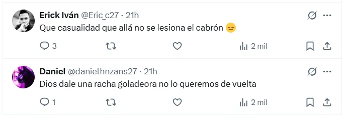 Como era de esperarse, las redes sociales se llenaron de comentarios llenos de humor e ironía. Algunos, destacaron la aparente facilidad con la que Giakoumakis encuentra la portería fuera de Cruz Azul: “Qué casualidad que allá no se lesiona el cabrón” o “Dios, dale una racha goleadora, no lo queremos de vuelta”, fueron algunos de los mensajes que reflejan la mezcla de sorpresa y diversión.