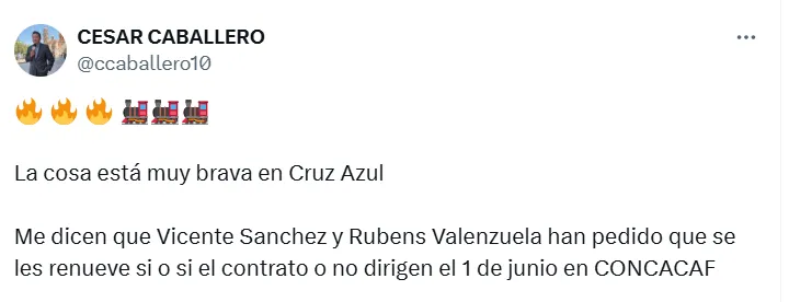 Pero todo se agitó cuando el reportero César Caballero encendió la polémica en X al afirmar que tanto Sánchez como su preparador físico, Rubens Valenzuela, habrían exigido la renovación inmediata de su contrato para dirigir el encuentro del 1 de junio. “La cosa está muy brava en Cruz Azul”, publicó Caballero, y las redes sociales estallaron.