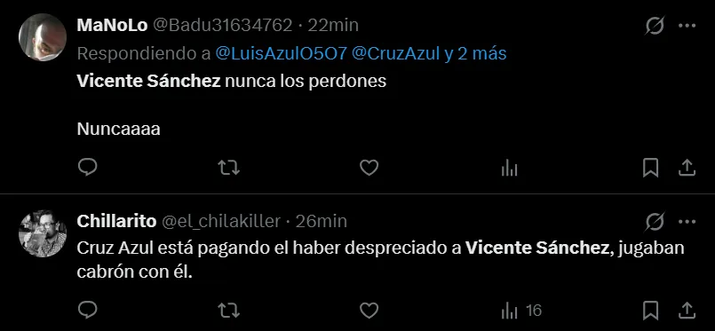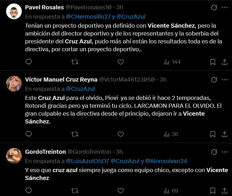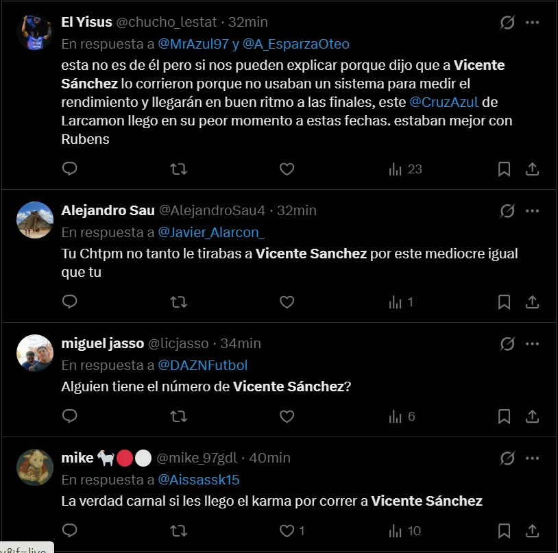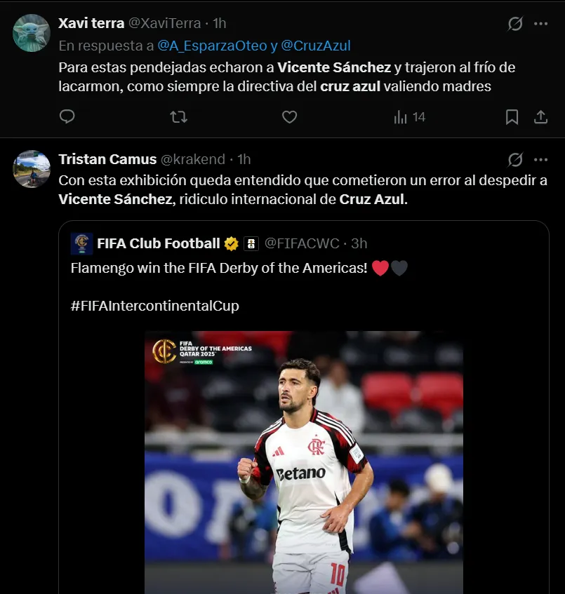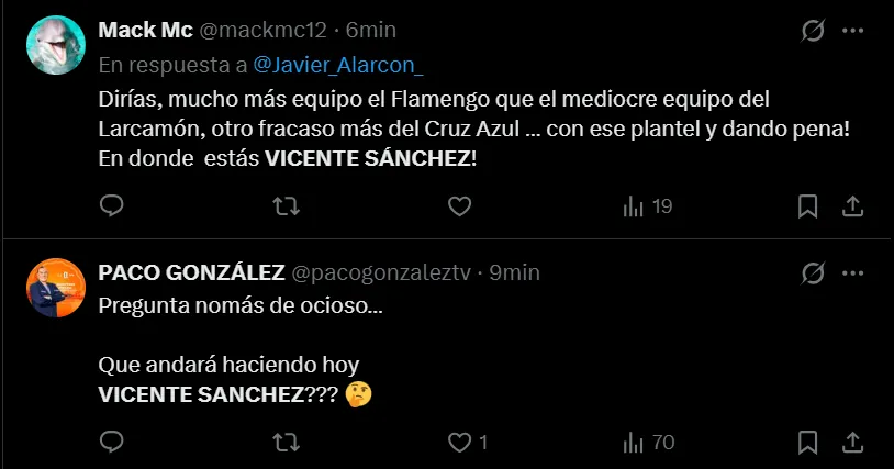 Cruz Azul ha vivido unos días sumamente complicados y dolorosos por las recientes eliminaciones sufridas tanto en la Liga MX como en la Copa Intercontinental, por lo que se manifestaron en redes sociales y de inmediato hicieron tendencia el nombre de Vicente Sánchez.