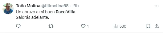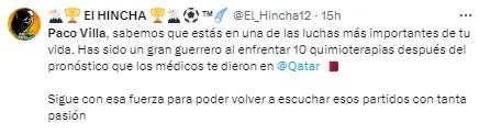 Algunos mensajes de apoyo de la afición a Paco Villa