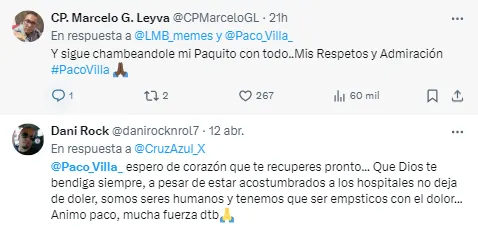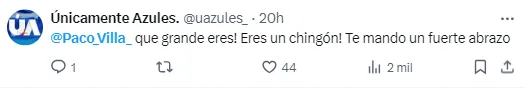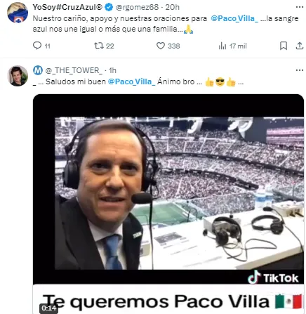 Es así que la afición de Cruz Azul no dudó en unirse en redes sociales para enviarle a Paco Villa toda muestra de apoyo. Y es que, el narrador se ha ganado el respeto y cariño del entorno celeste, pero también del resto del futbol mexicano.