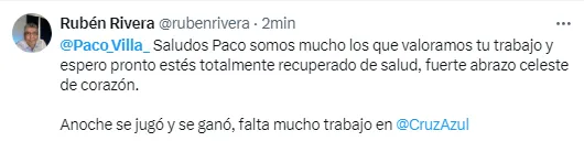 El mensajede apoyo de Cruz Azul a Paco Villa