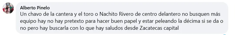 Otros destacaron la oportunidad de dar minutos a los que vienen empujando desde abajo: “Ahí están los jóvenes de la cantera para que traer alguito de fuera a estás alturas“. “Un chavo de la cantera y el Toro o Nachito Rivero de delantero, no busquen más”, señaló otro usuario.