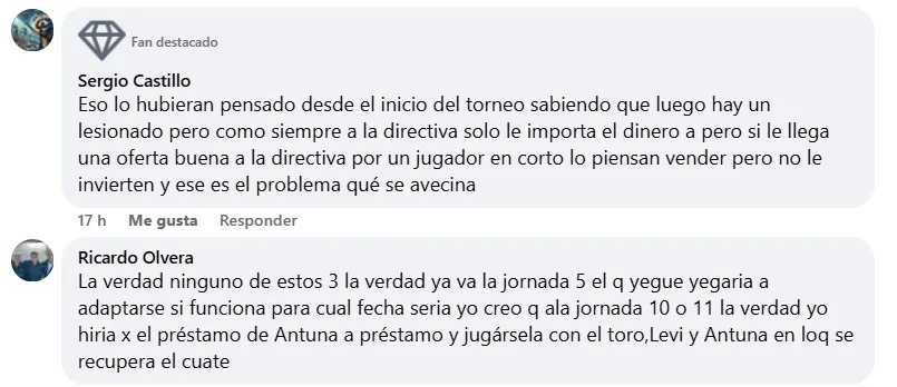 Los seguidores azules no tardaron en expresar su opinión en las redes sociales de Vamos Azul. Muchos cuestionaron la necesidad de traer jugadores a esta altura, sugiriendo que la solución debería encontrarse dentro de la propia cantera. “No gracias…. No los necesitamos!!!” o “Tienen en la cantera ¿por qué tapar a un joven canterano, aparte mexicano?“, comentaron algunos.