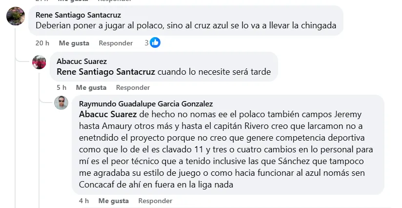 La frustración de los seguidores cementeros se hizo sentir en las redes de Vamos Azul. Un aficionado señaló: “Deberían poner a jugar al polaco, sino a Cruz Azul se lo va a llevar la chingada”. Otro, fue más directo y apuntando abiertamente contra el DT: “Es un verdadero pendejo el Larcamón al no poner a jugar a Polaco”.